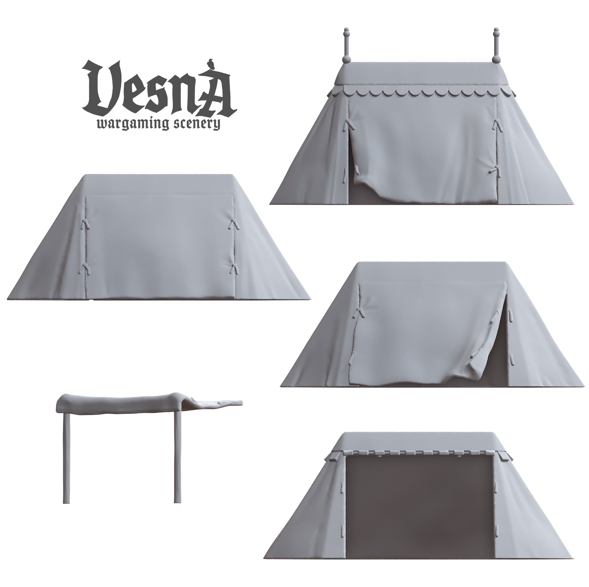 - Set of 4 tents and matching beds.