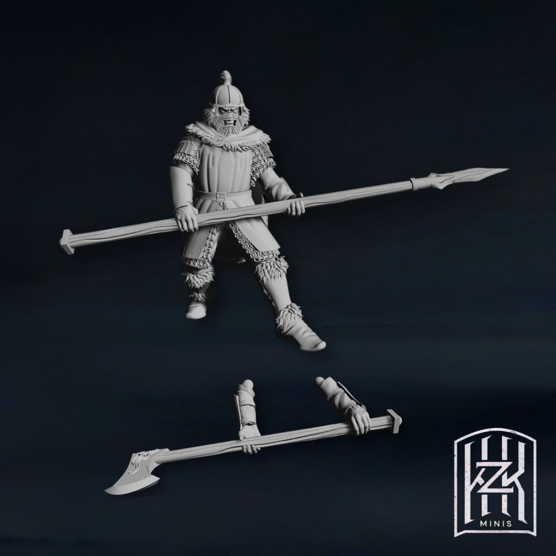 - Set of one figurine with its two weapon options, 25 mm round plastic base included.