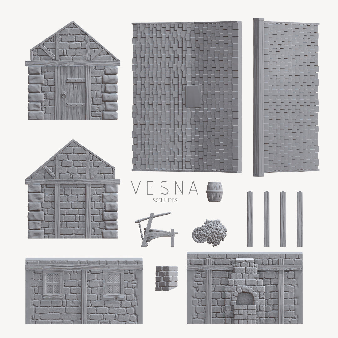 - Mixed printing in PLA plastic with a layer height of 180 µm (buildings and walls) and high-quality resin (8K) for doors and accessories.