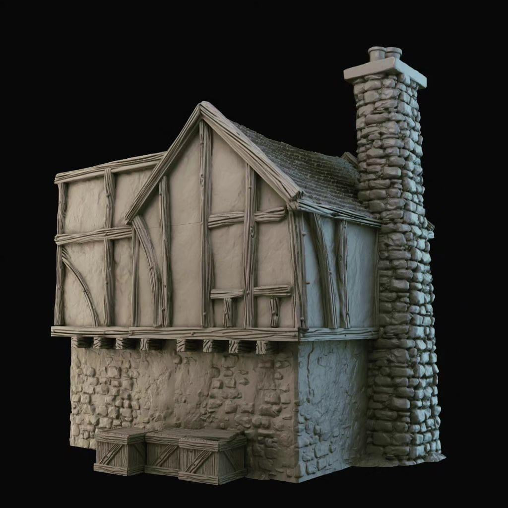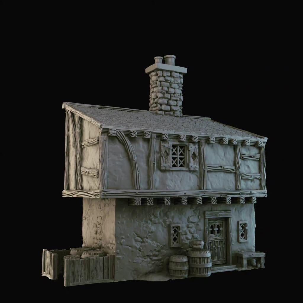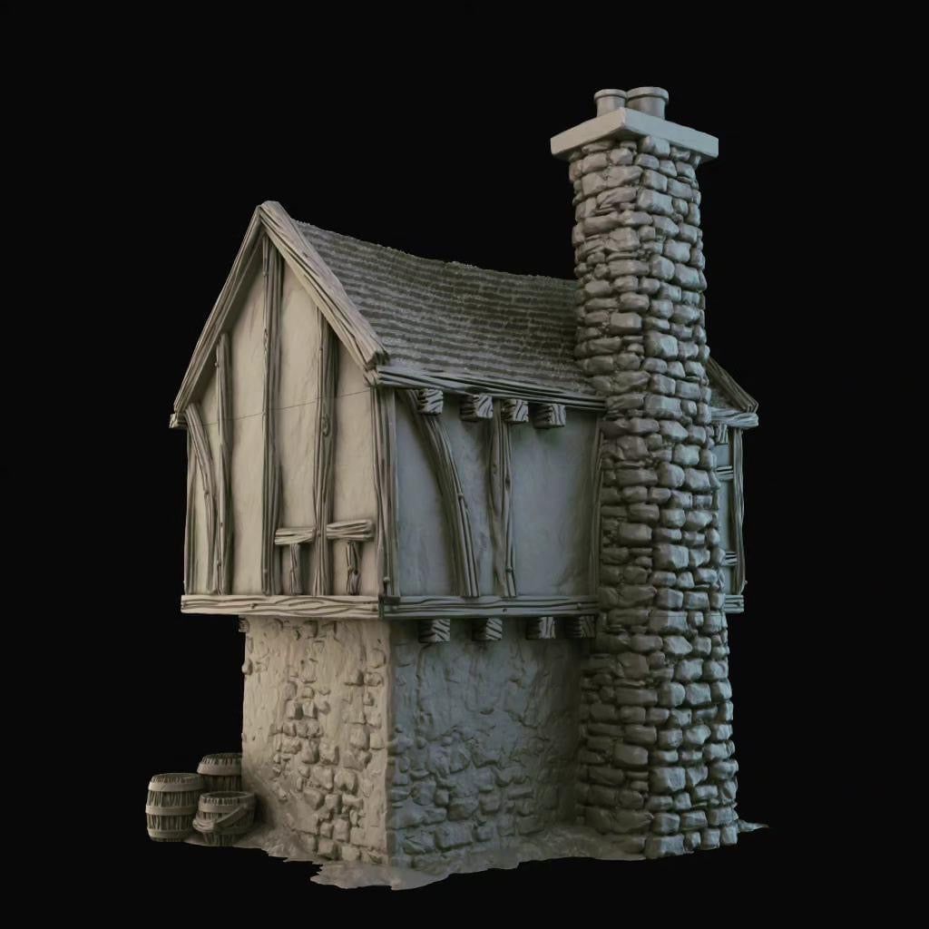 - Mixed printing in PLA plastic with a layer height of 180 µm (buildings and walls), and high-quality resin (8K) for doors and other accessories