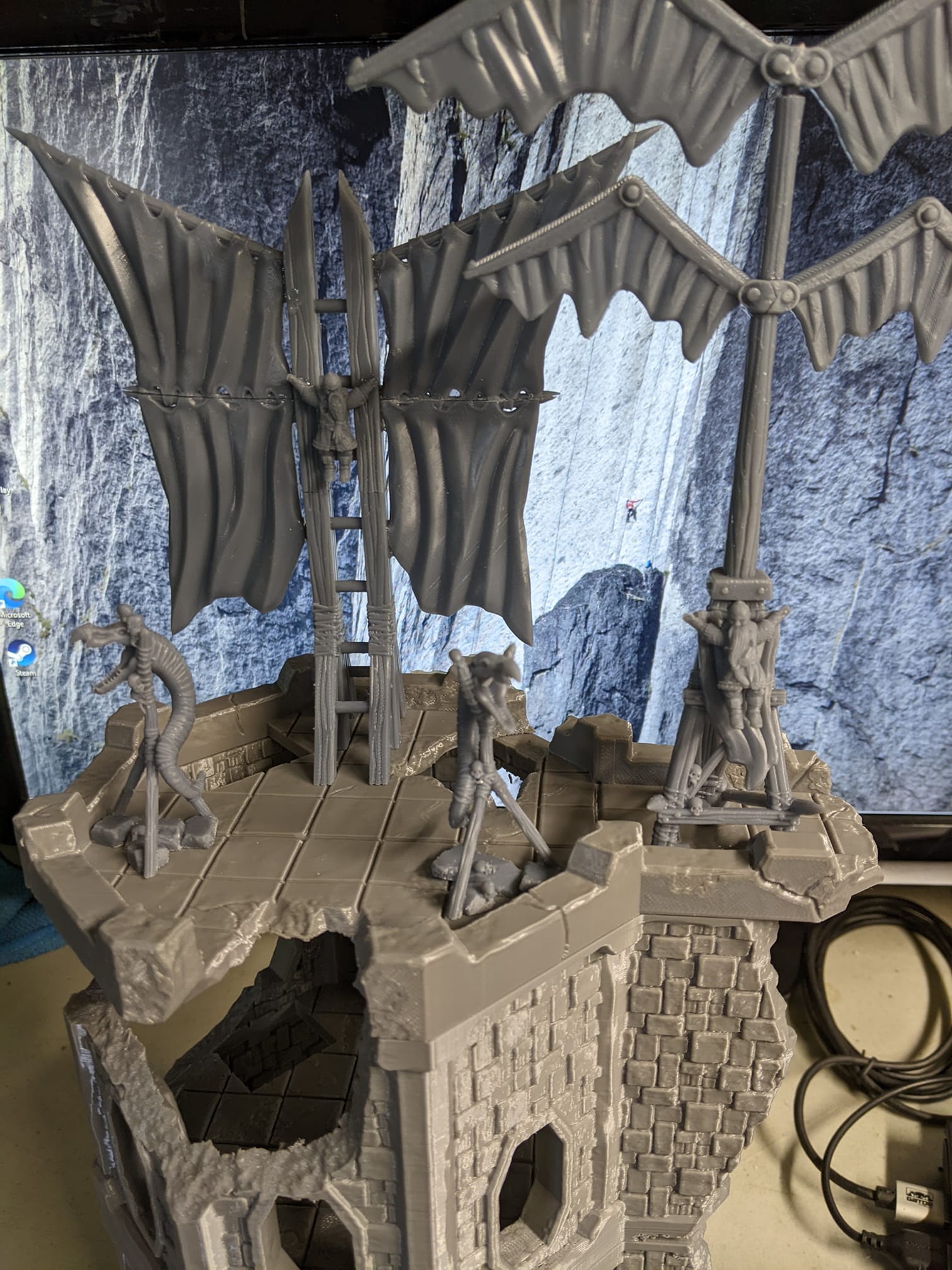 - Impression mixte en plastique PLA avec une hauteur de couche de 180 µm (rochers) et résine de haute qualité (8K).